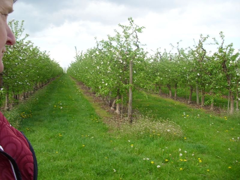 Diverse Schilder wiesen auf Nutzinsekten in den Plantagen hin. Natürlich dürfen auch die Bienenstöcke nicht fehlen, dann ohne die Arbeit der fleißigen Helfer gibt es im Sommer und Herbst eben kein Obst. Schilder an den Obstbaumreihen wiesen auf die hier gepflanzten Sorten hin, darunter auch viele ältere und alte Sorten, wie mir auffiel. Hier schlägt das Herz des Gärtners höher, weiß man doch den Wert, Fruchtigkeit und Saftigkeit, Geschmack, Haltbarkeit, Lagerfähigkeit vieler solcher Sorten noch zu schätzen.