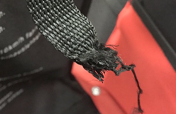 Gerissene Gurte (Foto: Stiftung Warentest) Gerissene Gurte (Foto: Stiftung Warentest) Gurte versagten in Praxis- und Labortests - Kinder­fahr­rad­anhänger Froggy BTC07/© Stiftung Warentest