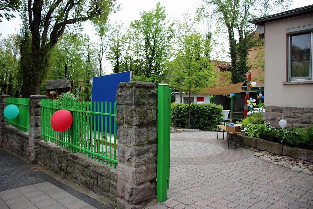 Der Eingangsbereich der Kindervilla war mit Luftballons geschmückt? Da musste doch etwas besonderes laufen. Na klar, Tag der offenen Tür weil man dieses Jahr 60 Jahre wird.