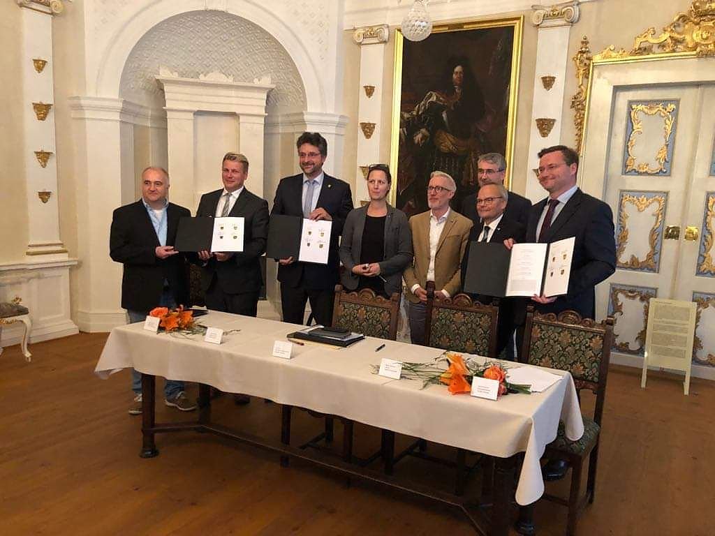 In festlichem Rahmen im Schloss Arnstadt und unter Beisein des Thüringer Kulturministers Hoff wurden am Donnerstag die Unterschriften geleistet. In Ihren Reden lobten die kommunalen Vertreter die Kooperation als gelungenen Abschluss der Verhandlungen. Hauptamtsleiter Stefan Schard, der die Stadt Sondershausen vertrat, würdigte in seiner Ansprache die Chancen dieser engen Zusammenarbeit.