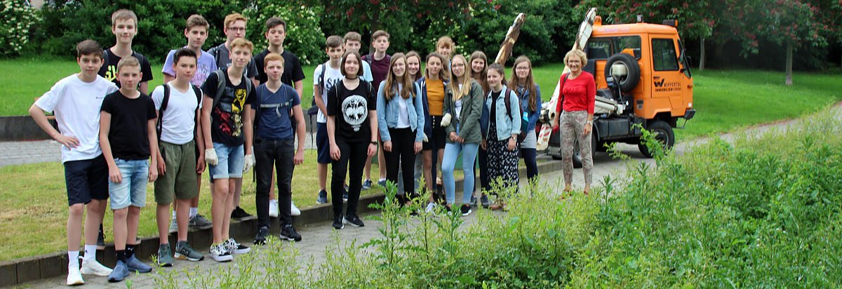 Als die Schülerinnen und Schüler zum Sammeln ausschwärmten, sprach kn noch mit der Klassenleiterin Daniela Kühn-Lumm. Nachdem sich die Klasse für die Aktion ausgesprochen hatte, fand man in der Wippertal Immobilien GmbH mit Geschäftsführer Eckhard Wehmeier Unterstützung. Die Wippertal stellte Fahrzeug, Müllbeutel und Greifzangen zur Verfügung.