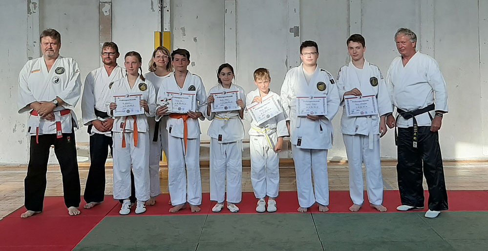 Alexander aus Roßleben und Amelia aus Artern, erreichte im Kinder und Jugendbereich den gelben Gürtel (5.Kyu), Philip aus Artern und Benjamin aus Heldrungen, erreichten im Jugend und erwachsenen Bereich den gelben Gürtel (5. Kyu) und Pia aus Wiehe und Ermond aus Artern legten mit sehr guten Leistungen die Prüfung zum 3.Kyu, den grünen Gürtel ab.