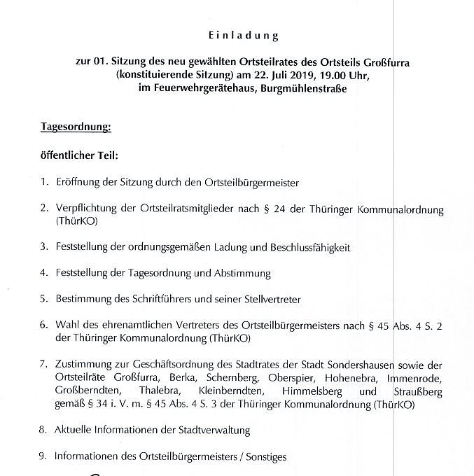 Heute gibt es in Großfurra eine Ortsteilratssitzung und an einem Tag im August ist die Stadtverwaltung Sondershausen nur eingeschränkt erreichbar...