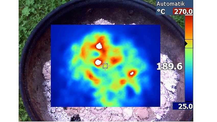 Ein häufiger Fehler ist die falsche Entsorgung der Kohlereste und Asche. In Versuchen hat das IFS bemerkenswert lange Glühzeiten ermittelt. Wie lange die Temperatur gefährlich hoch bleibt, hängt stark von den Gegebenheiten ab, etwa dem verwendeten Grill und der Menge der Grillkohle. „Wir empfehlen, von einer Brandgefahr von bis zu drei Tagen nach dem Entzünden der Grillkohle auszugehen“, sagt Drews.