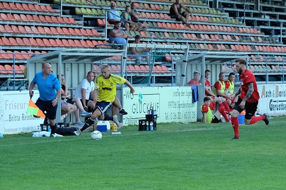 Nicht sehr viele Zuschauer fanden heute den Weg auf den Göldner von Sondershausen, offiziell gerade mal 32. Nun ja, nach so einem heißen Tag wollte so mancher nicht mehr aus dem Haus,
