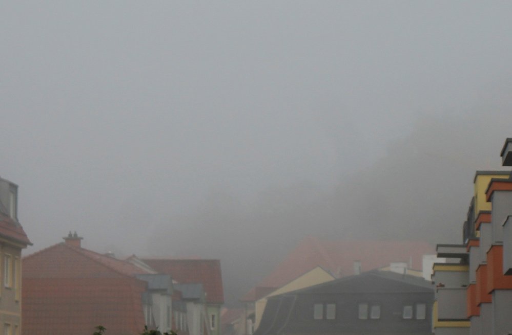 Und auch Schloss Sondershausen war in Nebel verhüllt. Herbstnebel mitten im Sommer.