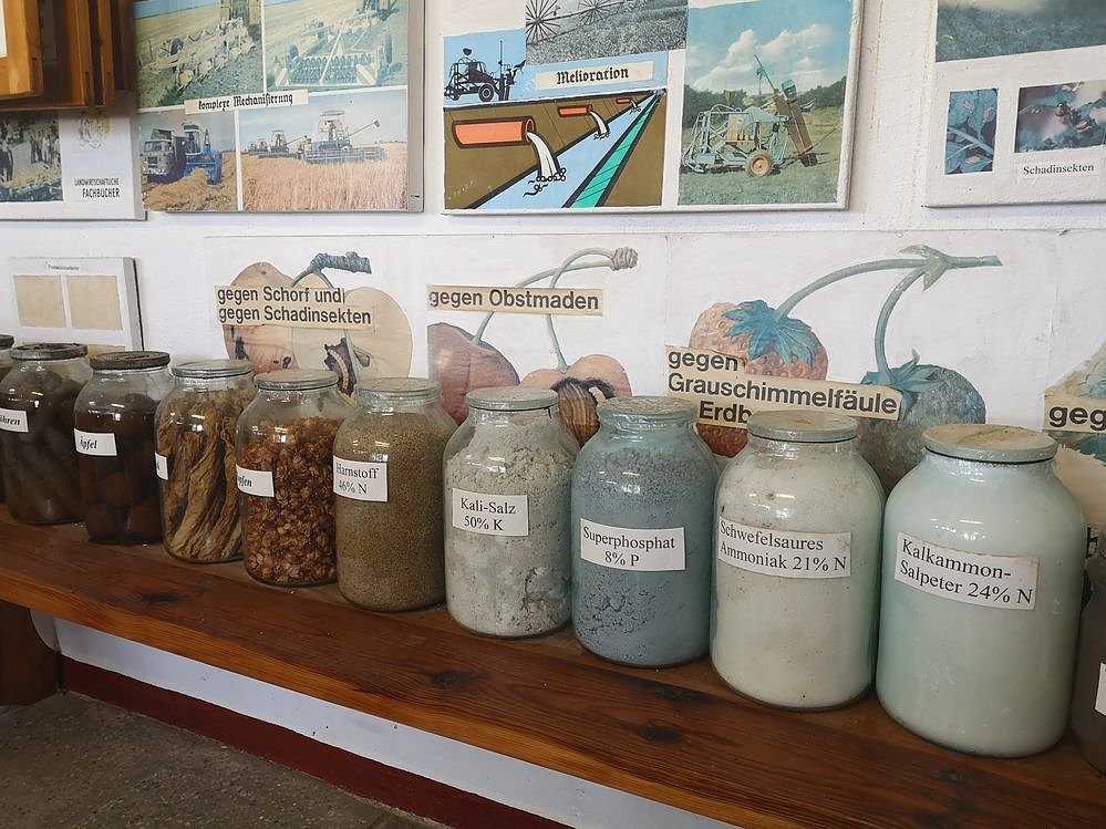 Mit Akribie und Fleiß haben die Mitarbeiter in dieser Ausstellung vieles zusammengetragen aus der Geschichte der Region vom Bauernkrieg bis zur Bodenreform 1945, haben alte Traktoren wie die Brockenhexe oder Dreschmaschinen aufgemöbelt und altes Küchengerät gesammelt, wie es auf dem Lande üblich war. Zur Ausstellung gehören ebenso die heimischen Tierarten, Gesteins- und Holzarten sowie Proben früherer Dünge- und Pflanzenschutzmittel.