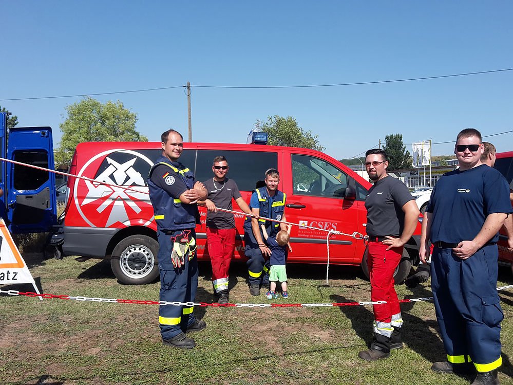 Auch die Rettungskräfte waren vor Ort, hier die Kameraden das THW und der Grubenwehr der GSES Sondershausen. Die Kameraden der FFW Stockhausen waren gegenüber mit ihren Vorführungen. Für Rätselraten sorgte das Durchfahren von Feuerwehrfahrzeugen mit Blulicht. Wie kn erfahren hat, waren es die Kameraden aus Bebra die Monatsausbildung haatten, und eine Übung bei einem Unternehmen in der Schachtstraße (Chemica) durchführten.