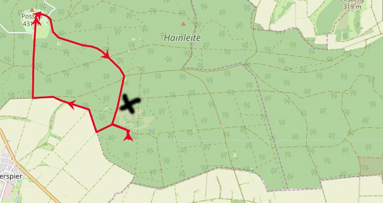 An der Possenalle Auffahrtsstraße zum Possen in Richtung Rondell, keine Warnung nichts. Auch wenn man andere Wege in der Hainleite bekommt man nicht mit, ob man in der Waldwildnis ist oder nicht.
