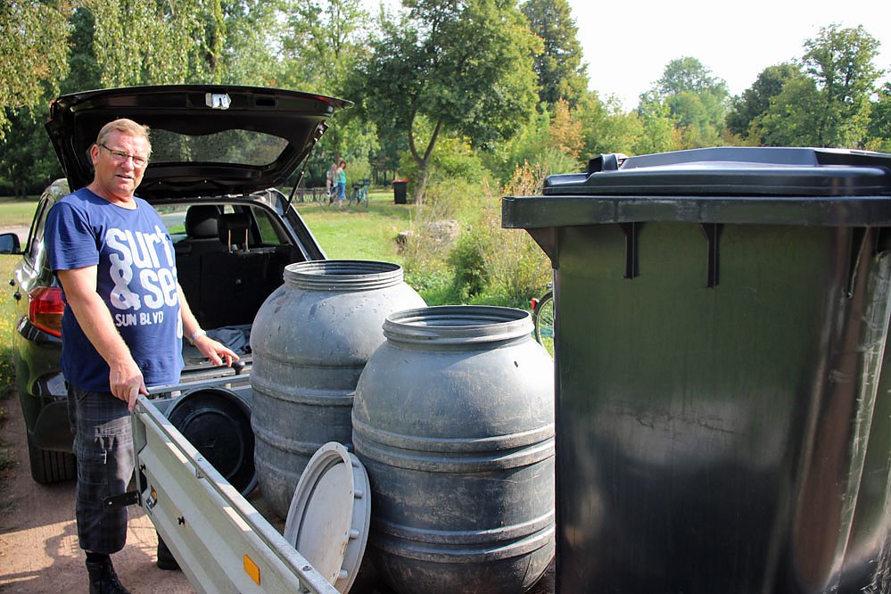Es wird bereits die dritte Fuhre an Fischen, hauptsächlich Giebel, Rotfedern und Schleie, die umgesetzt werden, so Vereinsvorsitzender Klaus Schulz. Die Zahl kann nur geschätzt werden, aber es könnten 1.000 Stück gewesen sein.