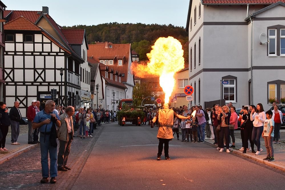 Aber auch unterwegs wurden die Besucher mit Spielen und Tänzen unterhalten und sogar ein Feuerschlucker war dabei.
