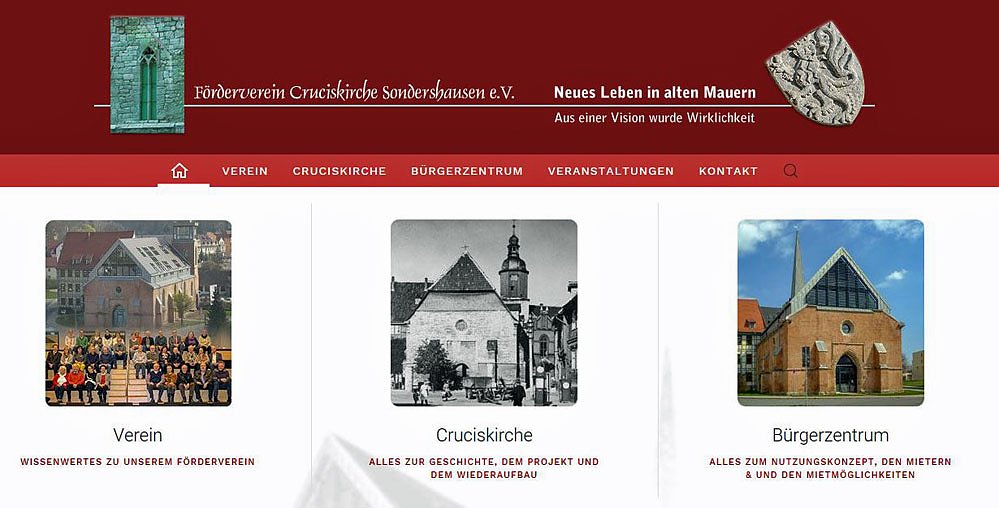 Seit August 2019 ist die neue Internetseite des Vereins im Netz erreichbar und informiert über alles Wissenswerte- den Verein, die Cruciskirche und das Bürgerzentrum und seine Nutzer. Unter www.foerderverein-cruciskirche.de erreichen Sie uns.