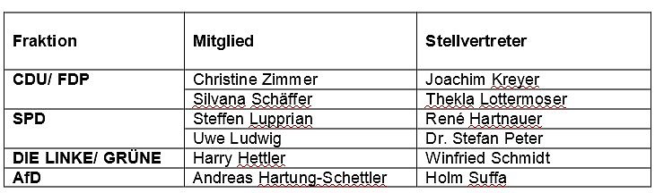 Bei der Wahl der 6 stimmberechtigten Kreistagsmitglieder findet § 7 der Hauptsatzung des Kyffhäuserkreises entsprechend Anwendung. Bei der Zusammensetzung der Ausschüsse hat der Kreistag dem Stärkeverhältnis der in ihm vertretenen Fraktionen oder Parteien und Wählergruppen Rechnung zu tragen. Die Sitze werden nach dem d´Hondtschen Verfahren verteilt.