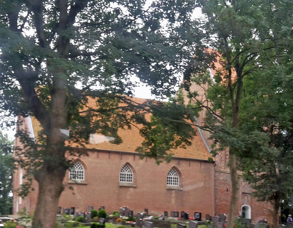 Da kn mit dem Urlauberbus unterwegs war, gelang auch noch dieser Schnappschuss aus dem Bus heraus. Es ist der Kirchturm im ostfriesischen Ort Suurhusen, Gemeinde Hinte. Weil der kleine Kirchturm bereits 5,19° außer Lot ist, beansprucht er den Titel, schiefster Turm der Welt zu sein.