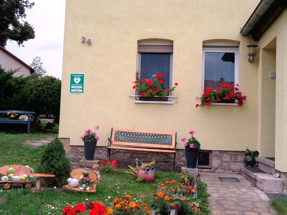Zu ihm gehören das notwendige Hinweisschild und eine Notfallklingel, mit deren Hilfe jeder Einwohner Etzlebens Peter Keßler erreichen kann, oder wenigstens, bei seiner Abwesenheit, über Gisela Kämpfe das Gerät ausgehändigt bekommt.