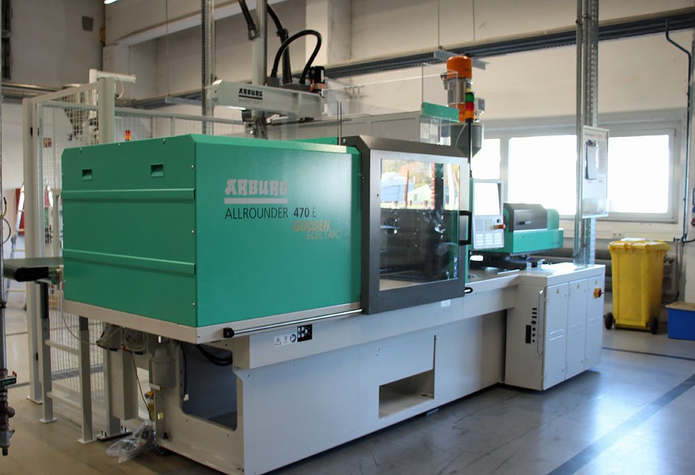 Dr.-Ing. Alexander Zimmermann war aber auch wegen dieser Maschine von Bamberg nach Sondershausen gekommen. Vor einer Woche war eine neue Spritzguss-Maschine geliefert worden. Die neue Maschine mit einer besonders hohen Energieeffizienz wird veraltete Maschinen ablösen. Die neue Maschine der Arburg GmbH aus Deutschland, kann verschiedene Formen herstellen.