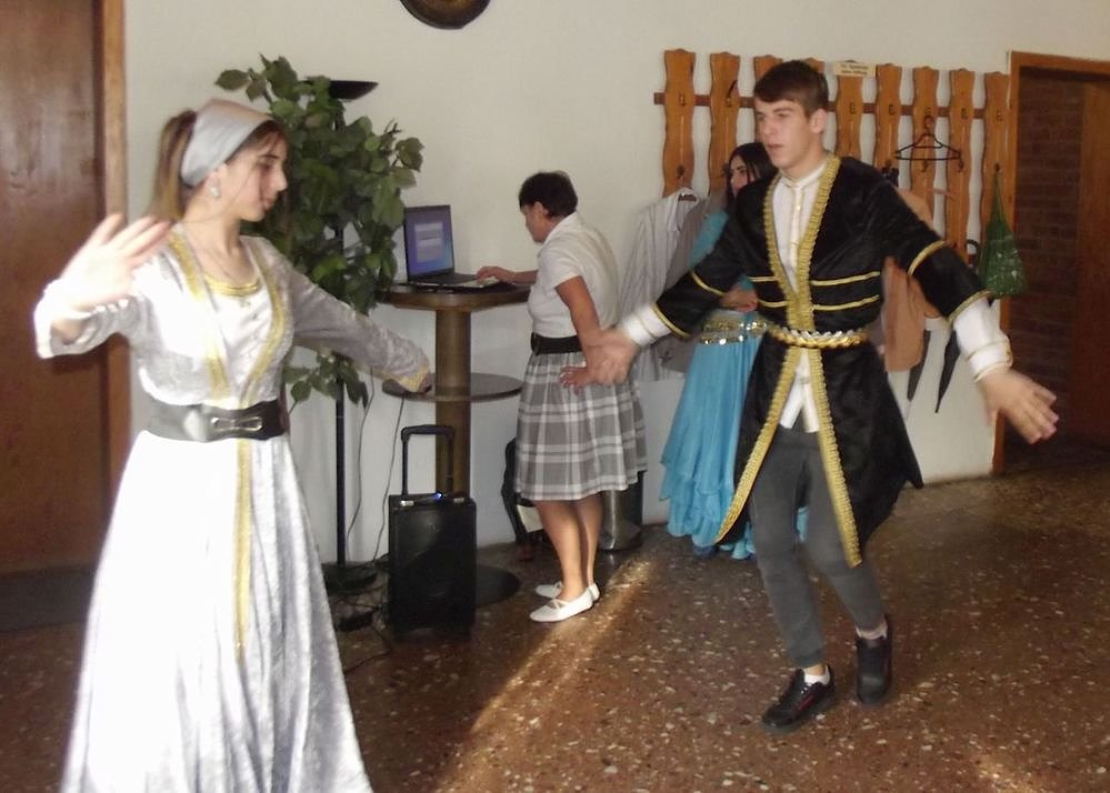 Inzwischen hatten sich unsere Freunde von Kontakt auch bereits vorbereitet um uns mit traditionellen Tänzen aus ihrer Heimat zu erfreuen und zu unterhalten. Ganz besonders verfolgten unsere Senioren einen Tanz mit entsprechender Tracht aus Tschetschenien.