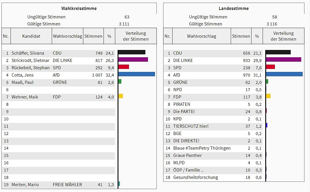 Die Stimmen für die Landtagswahl sind abgegeben. Jetzt geht es an Auszählen der Stimmen. Wir halten Sie nahezu live auf dem Laufenden mit unseren Hochrechnungen aus dem Wahlkreis 11 (östlicher Kyffhäuserkreis)...