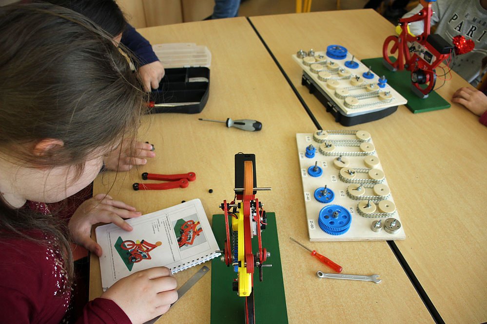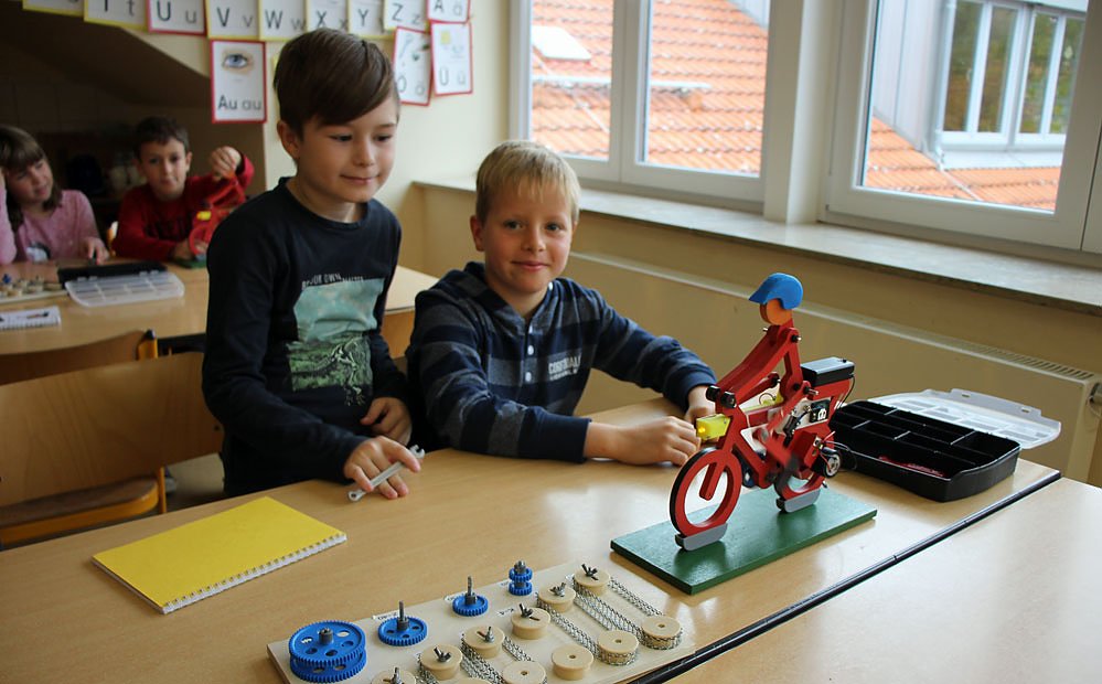 - Im Projekt I geht es um die Solarenergie. Es wird ein Modell eines E- Bikes montiert. Da gab es schon ganz schön zu tüfteln, damit alles funktioniert, Ben und Anton haben es schon geschafft.