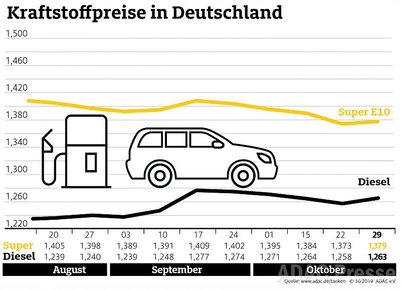 Nachdem die Durchschnittspreise für Benzin und Diesel zuletzt fünf Wochen in Folge gesunken sind, wird Tanken in Deutschland wieder teurer. Laut aktueller Auswertung des ADAC kostet ein Liter Super E10 im Bundesmittel derzeit 1,379 Euro, das sind 0,6 Cent mehr als in der Vorwoche...
