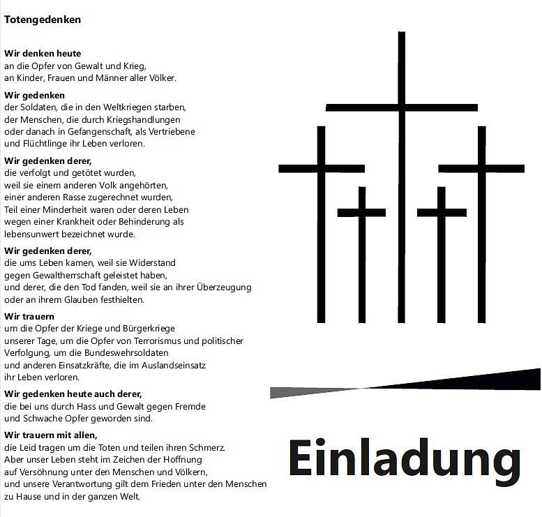 Zur Ehrung aller Opfer von Krieg und Gewalt laden wir Sie, Ihre Angehörigen und Freunde anlässlich
