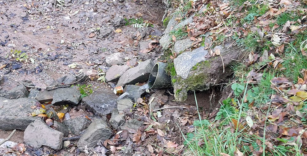 Man muss schon gut hinschauen, um das kleine Rinnsal zu sehen, dass den kleinen Parkteich wieder befüllen soll.