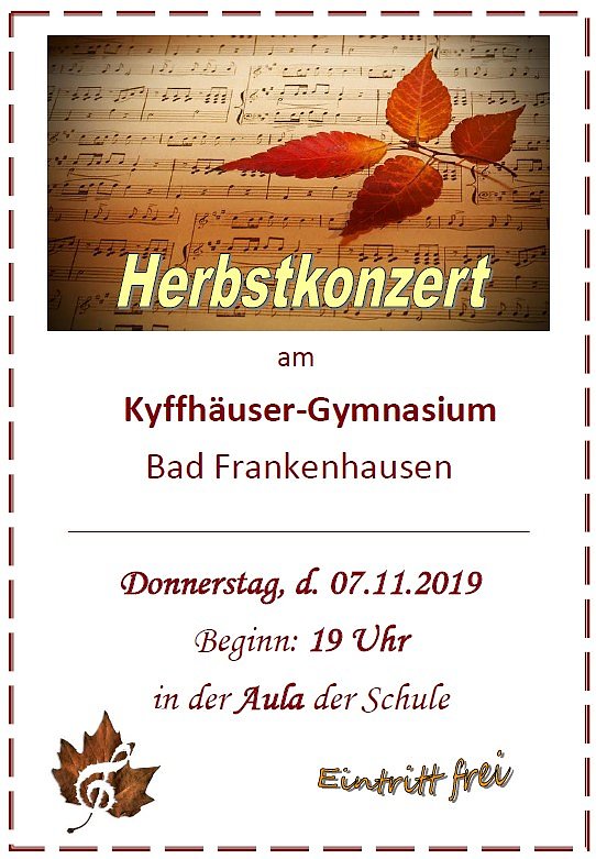 Das traditionelle Herbstkonzert am Kyffhäuser-Gymnasium Bad Frankenhausen steht in diesem Jahr unter dem Motto Neue Schule – alte Songs". Dazu dieser Tipp...