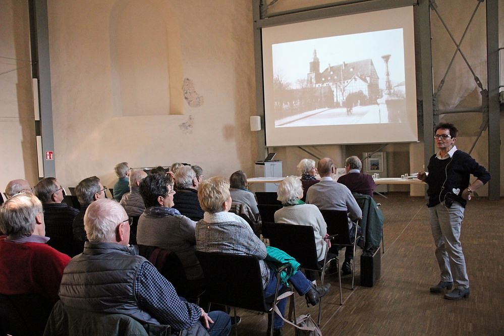 Die Leserunde Blick zurück (drei Frauen und drei Männer) will für die drei Quartiere um die Cruciskirche herum und für die Cruciskirche selbst eine Chronologie mit Bildern, Bewohnern und Geschichten erarbeiten. Dazu wurde heute in der Veranstaltung der Grundstein gelegt.