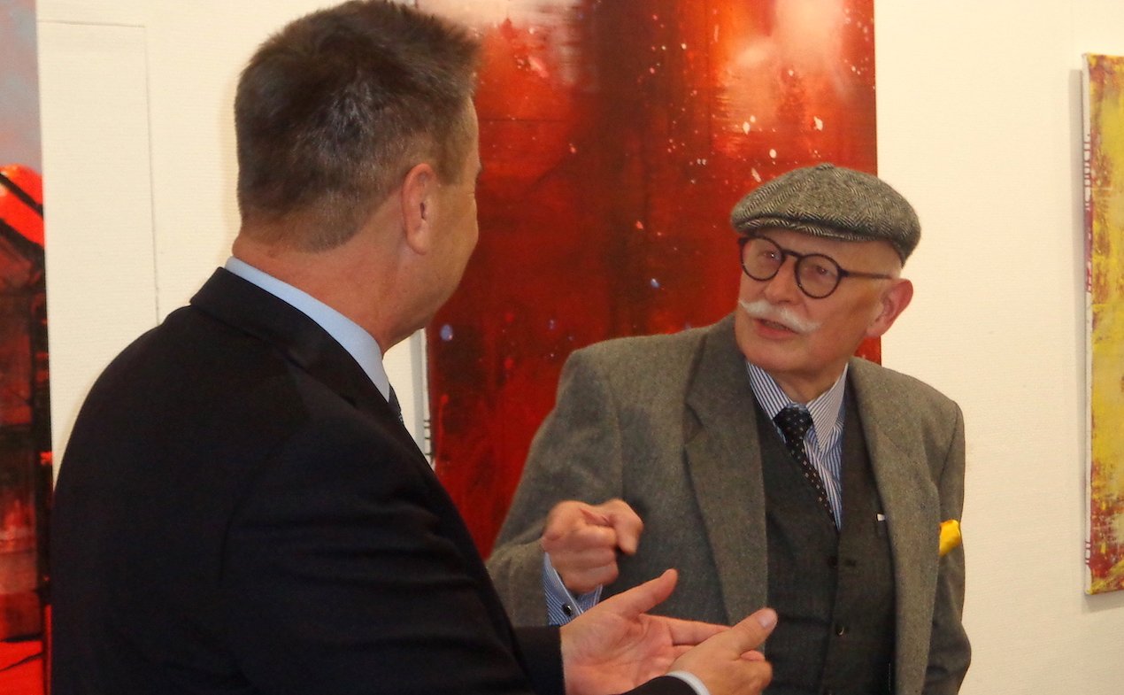 Jens-Fietje Dwars bescheinigte dem Jubilar zudem gelernt zu haben, wie man eine Welt aus Farbe erschafft. Bei Mackensen werde die Farbe gegenständlich, sie wird lebendig, zieht uns an. Er braucht keine Weltreisen, um Welt zu erschaffen. Und hinsichtlich der aktuellen Niedrigzinsen auf Sparguthaben appellierte der Laudator an die Kunstfreunde: Kauft Kunst, denn es gibt keine bessere Wertanlage!