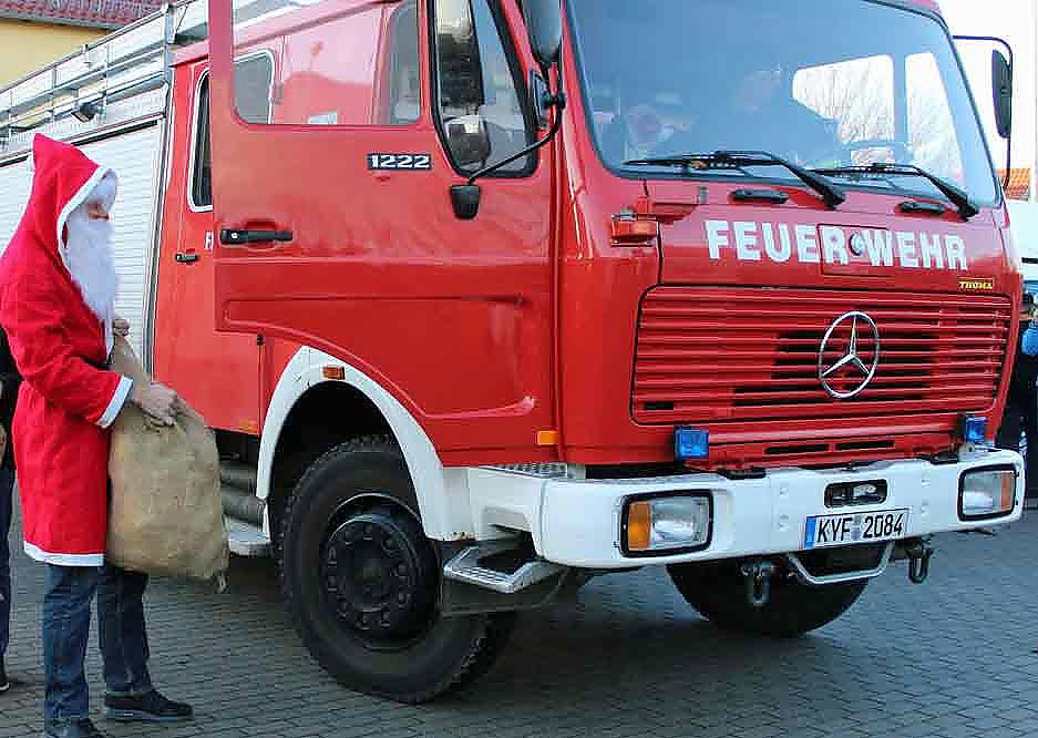 Nach dem Auftritt der Kinder der Kita "Anne Frank" kam der Nikolaus wie jeder Jahr mit der Feuerwehr, weil er es immer eilig hat, aber genug Zeit Geschenke für die Kinder zu verteilen.