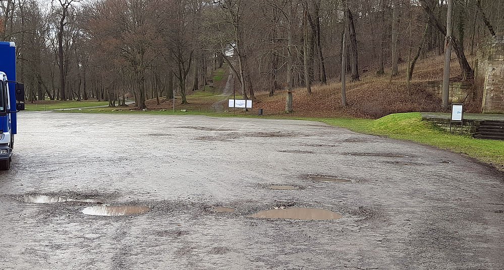 Ein trauriger Zustand, der schon Jahr dauert und man hat bei der Schlösserstiftung nicht mal Geld um wenigstens mit einigen Schippen Kies die größten Löcher zu verfüllen.