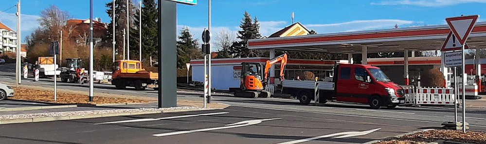 Bereits seit längerem gibt es keine freie Fahrt durch die Erfurter Straße, nur dass sich die Baustelle von Nähe Kreisel in Richtung Tankstelle verschoben hat und das Ganze mit einer Baustellenampel geregelt wird.