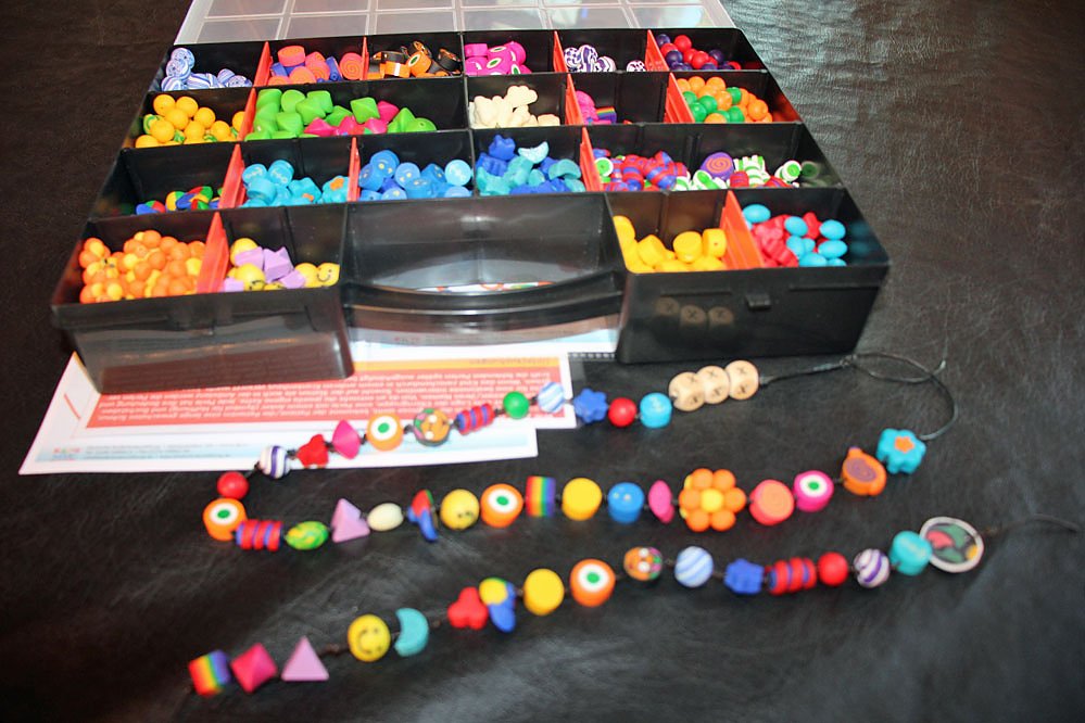 Mit den Perlen werden Ketten besonderer Art hergestellt. Jede Perlenart hat eine besondere Bedeutung. Auf der Kette gibt es Perlen für den Namen. Jede Farbe hat eine besondere Bedeutung in Hinblick auf die Behandlung des erkrankten Kindes. Die Farbe "blau" bedeutet Behandlung im Krankenhaus, usw..