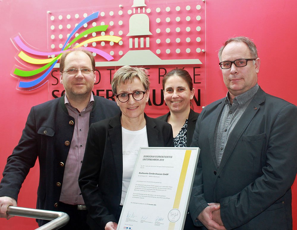 Autor: khhAm 2. März 2020 wurde den Stadtwerke Sondershausen GmbH (SWS) zum zweiten Mal in Folge das Siegel "Starke Zukunft - Demografieorientiertes Unternehmen" verliehen. Im Siegelprozess wird das Personalmanagement des Unternehmens auf seine Nachhaltigkeit geprüft und beim Erhalt für dessen Zukunftsfähigkeit ausgezeichnet. Die IWT - Institut der Wirtschaft Thüringens GmbH koordiniert den Prozess der Siegelvergabe.