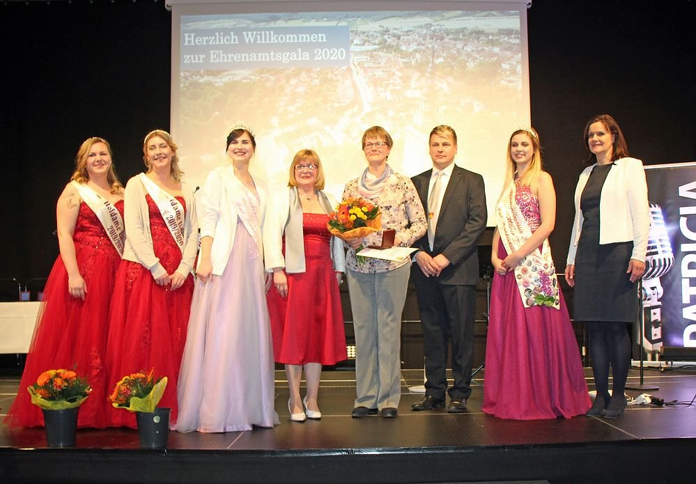 Dann ergriff der Hausherr, Bürgermeister Matthias Strejc (SPD) das Wort und begrüßte die Gäste im Saal. Neben den vielen Ehrenamtlern auch Landrätin Antje Hochwind-Schneider (SPD), viele Stadträte und Vertreter der Wirtschaft und des Finanzwesens. Genauso herzlich begrüßt die Hoheiten der Region, so die Fliederkönigin und die Fliederprinzessin und beiden Hofdamen des Laubkönigs aus Udersleben, die später zusammen noch allen ausgezeichneten und nominierten Ehrenamtlern einen Blumenstrauß überreichten.