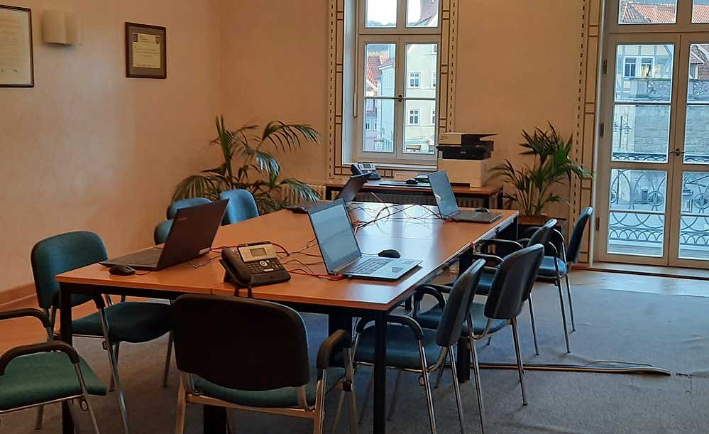 Hier ein Blick auf die vier Arbeitsplätze die zeitweise eingerichtet wurden. Insgesamt wurden 12 Arbeitskräfte aus anderen Bereichen der Verwaltung abgezogen, um zusätzliche Afgaben zu erledigen, so Fahrten zu den Laboren.
