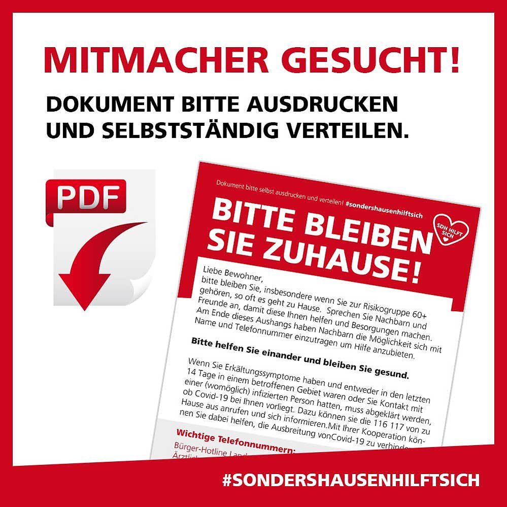 Bitte druckt das Dokument aus und hängt es in euren Hauseingang oder werft es in die Briefkästen der Nachbarschaft. Tragt euch ein und bietet Hilfe an.