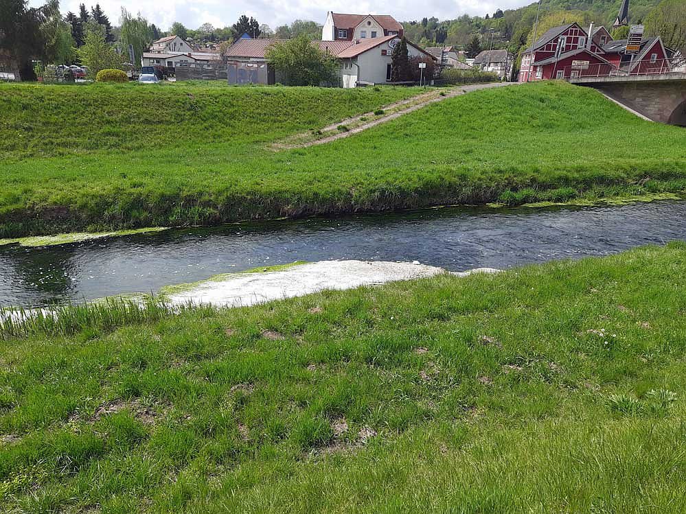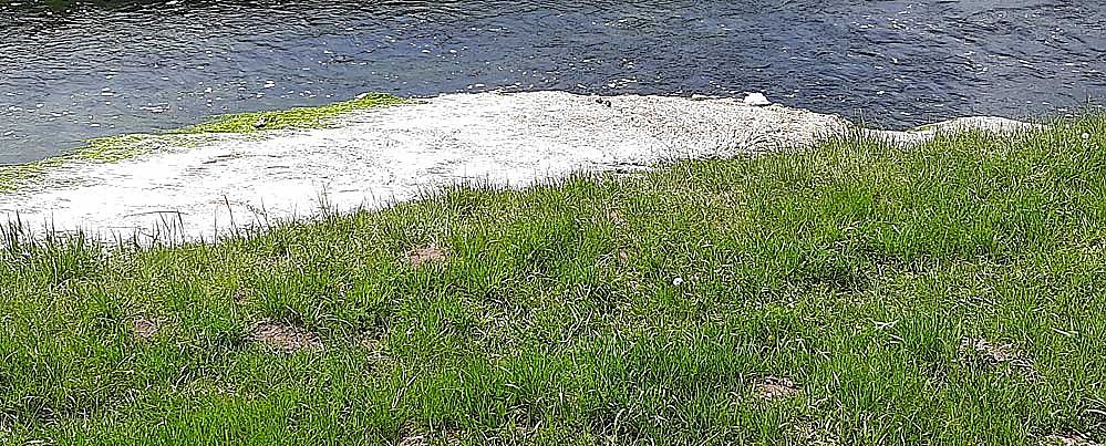 Mehrmals wurde kn gefragt, was hat es eigentlich mit den weißen Teppich auf sich, die sich am Rand der Wipper breit machen, wie hier in der Nähe der Wipperbrücke bei Stockhausen. Teilweise treiben auch kleine Inseln die Wipper herunter.
