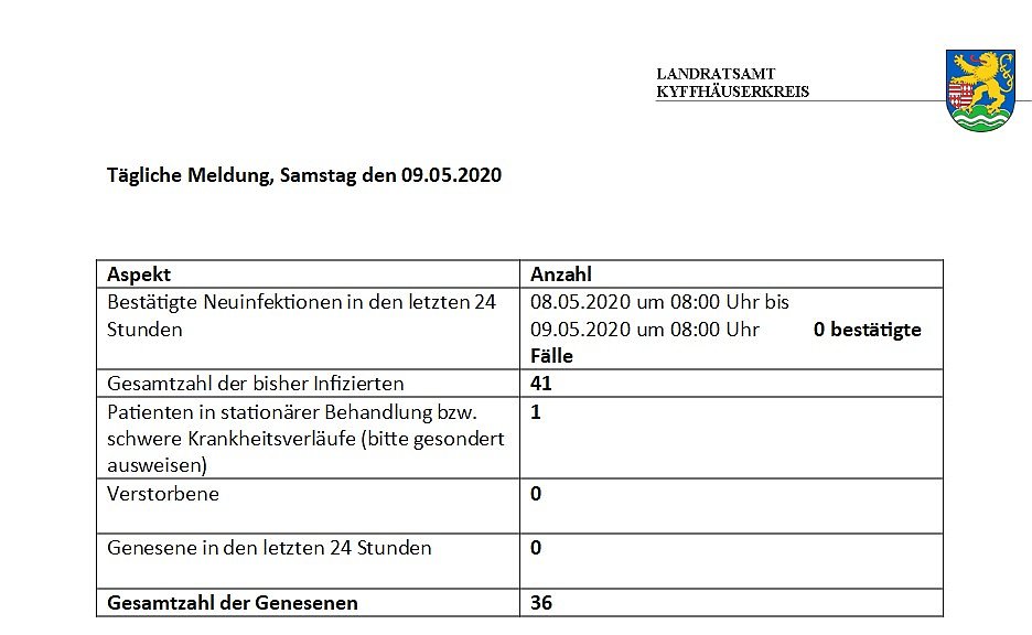Hier die tägliche Meldung aus dem Landratsamt Kyffhäuserkreis verbunden mit einer Information aus dem Thüringer Ministerium für Migration, Justiz und Verbraucherschutz...