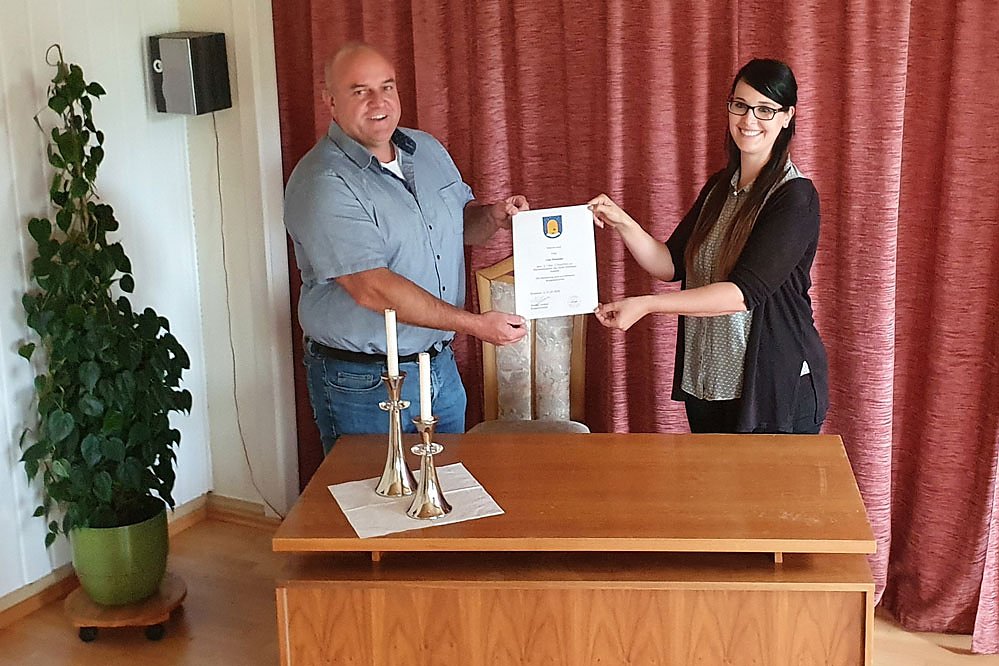 Seit Beginn des Jahres machte sich Lisa Demmler mit allen Aufgaben vertraut und wurde von Ramona Klöppel auf die Ausbildung zur Standesbeamtin vorbereitet. Nach erfolgreich absolviertem Lehrgang und einer jetzt noch anstehenden weiteren Einarbeitungsphase, steht Lisa Demmler seit dem 01.07.2020 -n eben ihren eigentlichen Aufgaben in der Finanzverwaltung - als zweite Standesbeamtin Ramona Klöppel zur Seite.