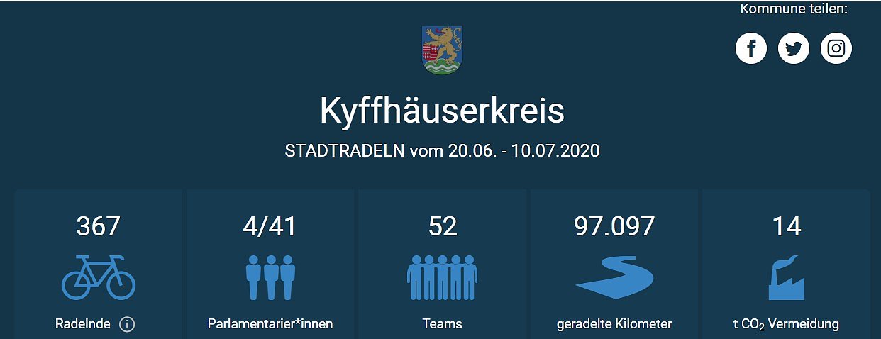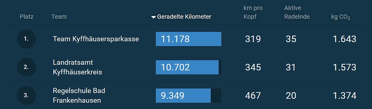 Autor: khhAm Freitag endet offiziell die Frist für das Stadtradeln im Kyffhäuserkreis. Die Nachzügler dürfen natürlich noch ihre Ergebnisse eintragen. Deshalb ist das hier nur ein erstes Zwischenergebnis: