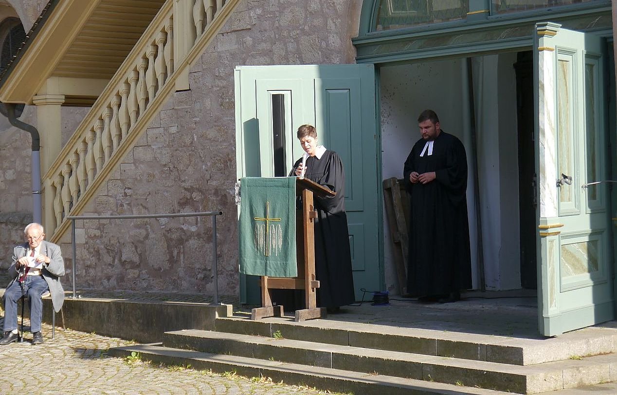 Am Montag konnten die Zuhörer die Glockentöne von 3 Glocken hören. Pfarrer Weber begrüßte die Anwesenden, unter ihnen den Bürgermeister Steffen Grimm.