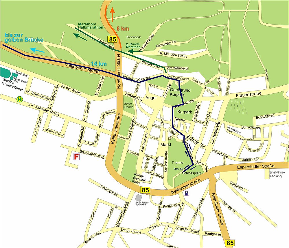 Angeboten werden der 6km- und 14km-Lauf, sowie der Halbmarathon und der Marathon. Dieser wird jedoch nicht wie gewohnt über das Kyffhäuser-Denkmal verlaufen, sondern zweimal entlang der Halbmarathon-Strecke.