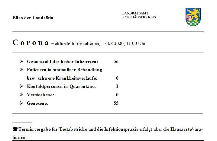 Im ehemaligen Altkreis Sonderhausen wird derzeit 1 Kontaktpersonen (Index- Fall Landkreis Sömmerda) betreut.