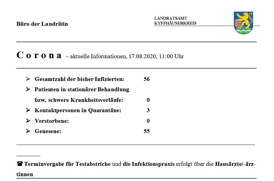 Hier die aktuelle Corona-Meldung aus dem Landratsamt Kyffhäuserkreis...
