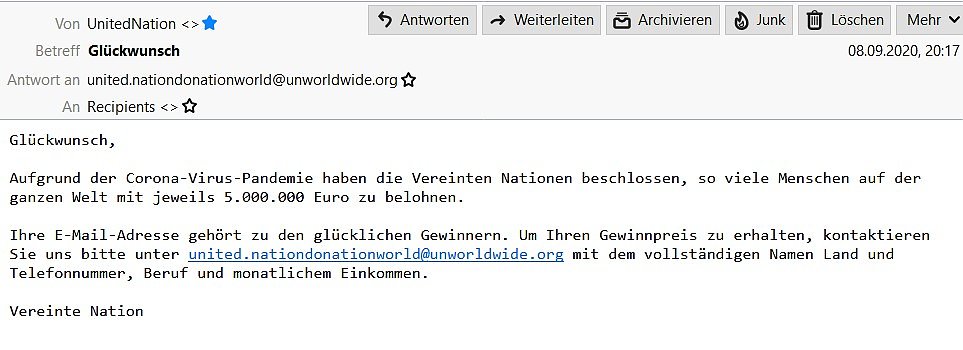 Falls Sie auch so eine Mail erhalten haben, bitte schnell in den Papierkorb. Besonders nicht auf den angegebenen Link drücken.