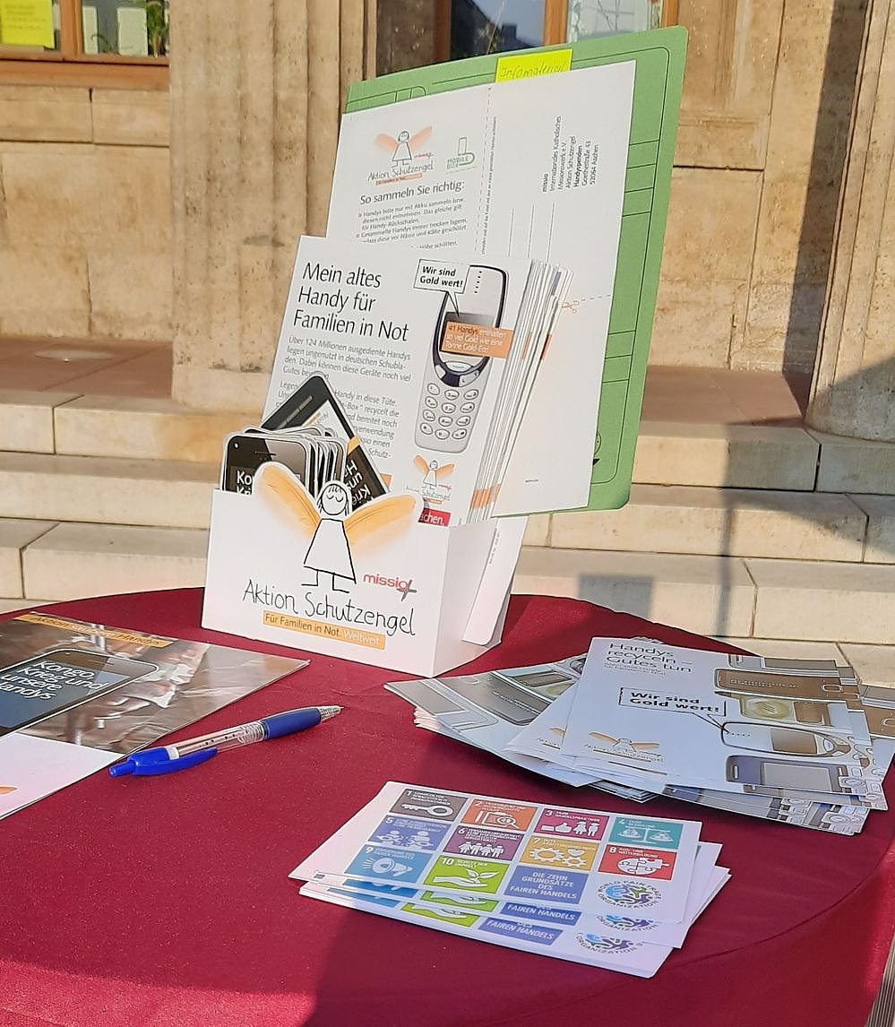Der Verein Eine Faire Welt e.V. unterstützt mit dieser Aktion missio, die als Kooperationspartner von Mobile-Box alte Handys sammeln und so Geld für ihre Aktion Schutzengel. Für Familien in Not. Weltweit. generieren.