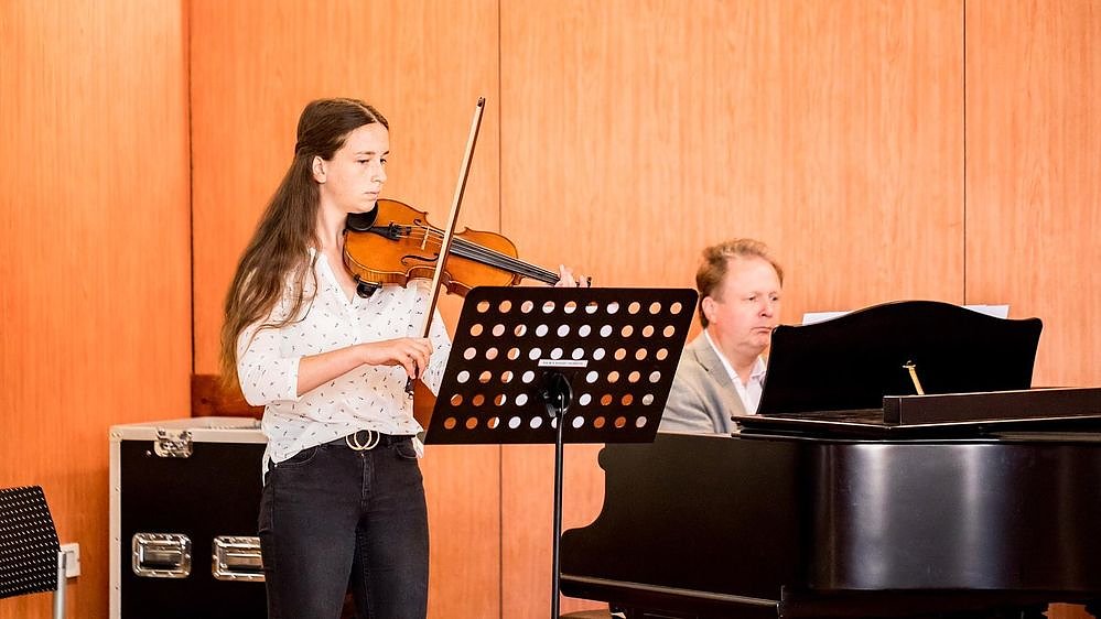 Den musikalischen Rahmen gestalteten Liesa-Marie Lohre (Violine) und Ronald Uhlig (Klavier) mit zwei Kompositionen von Manfred Schnitz.