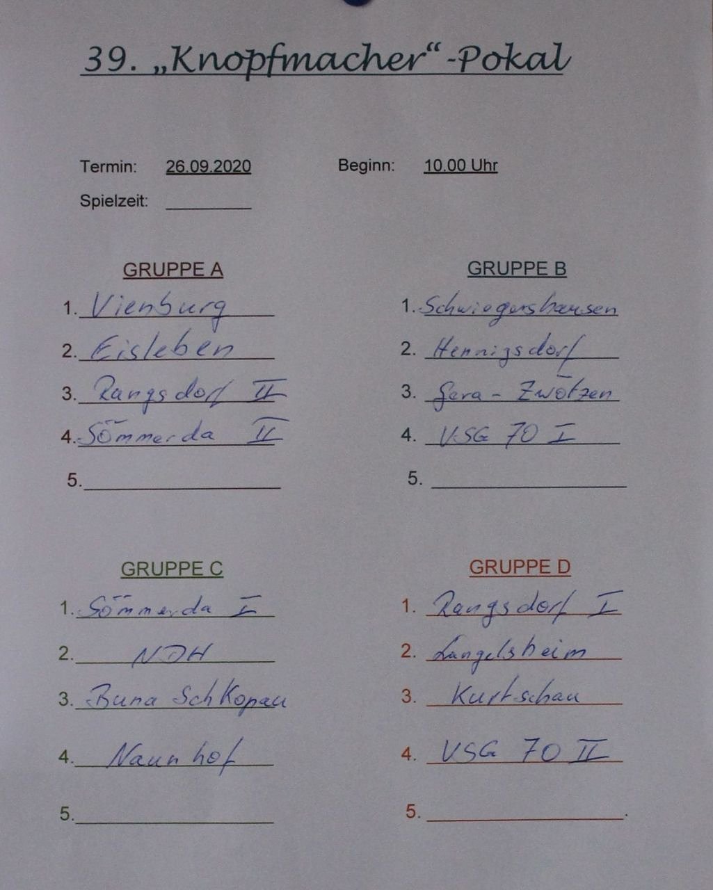 Das 39. Knopfmacher-Pokalturnier 2020 am gestrigen Tag in Bad Frankenhausen stand wettertechnisch nicht unter einem guten Stern...