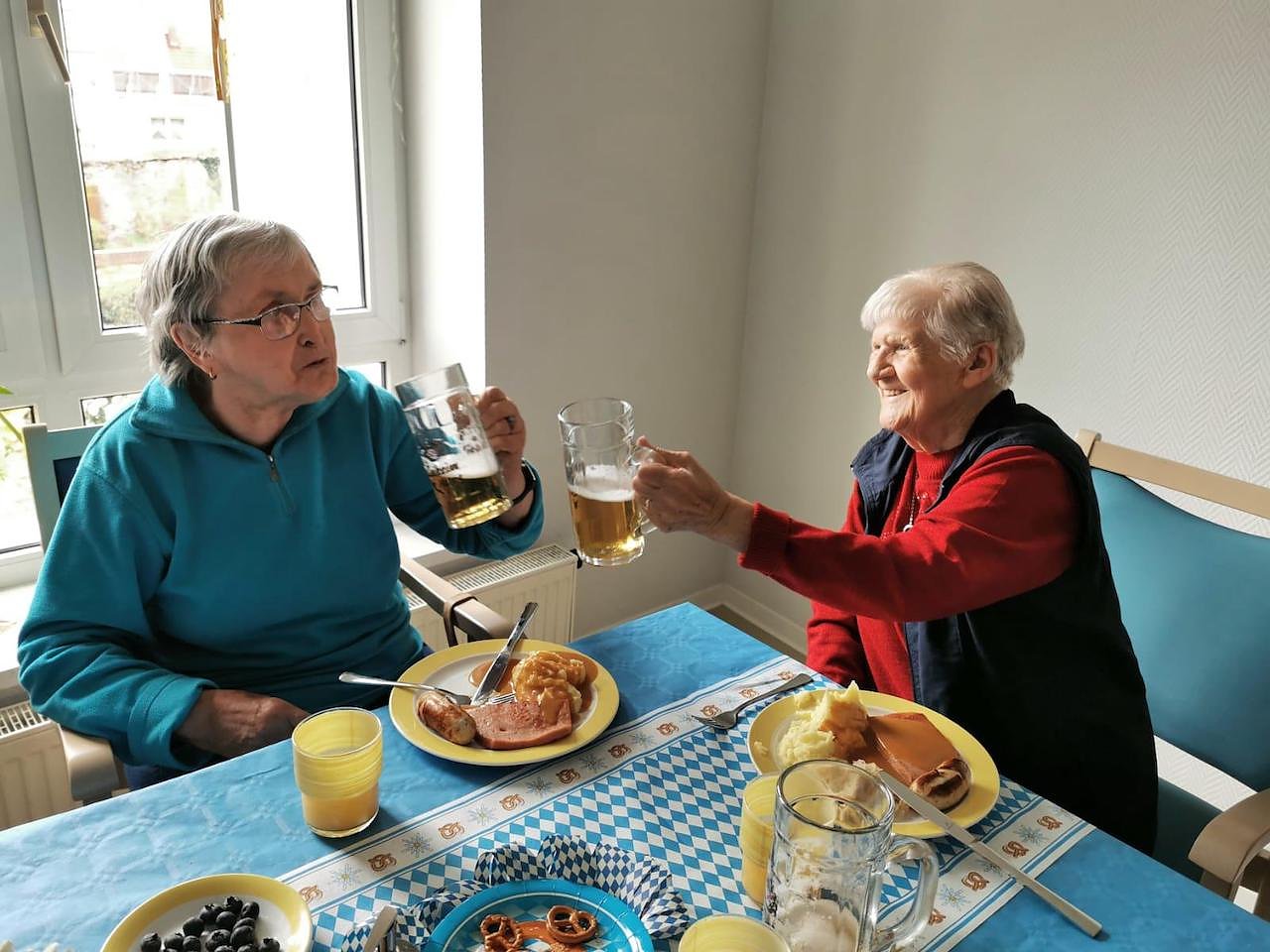 Mit Wimpeln, Tischdecken in blau-weiß-kariert und Luftschlangen wurden die Gäste am Mittwoch begrüßt. Es wurde gesungen, geschunkelt und geklatscht.